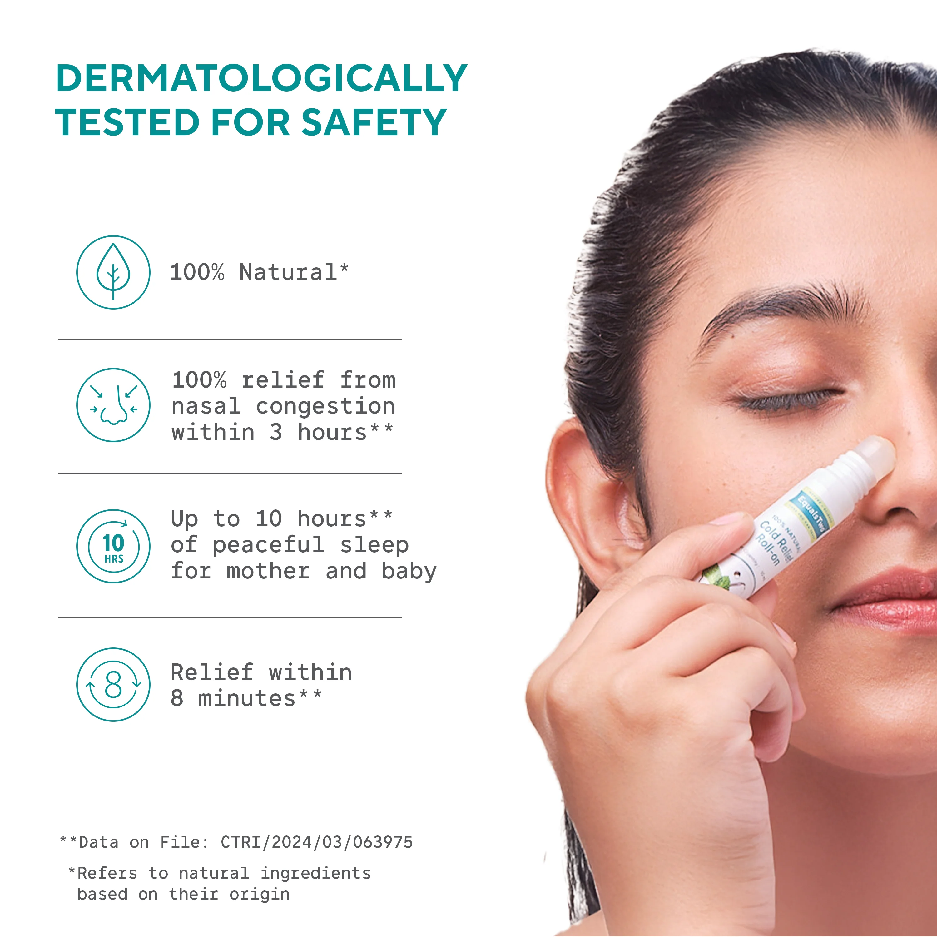 Get quick relief from nasal congestion with a 100% naturally originated formulation for cold relief. Our Cold-Relief Roll-On is dermatologically tested and promises a peaceful sleep and symptomatic relief.